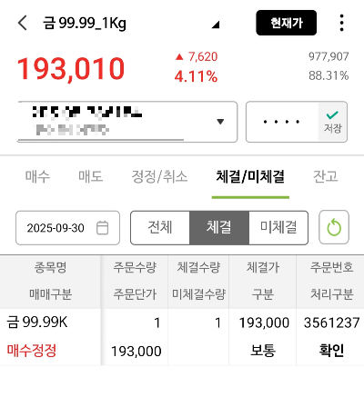 증권사에 계좌를 개설하여 1g 단위로 금을 주식처럼 사고파는 거래 방법이다. (25년 10/15일 기준 1g 약 225,000원)
