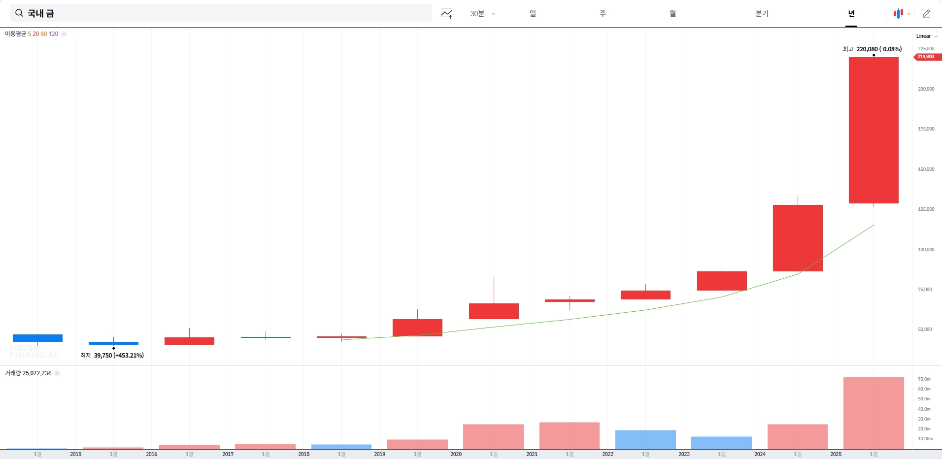 2019년 한 돈에 약 20만원 할 때만 하더라도 너무 올랐다고 비싸다고 했었는데 그게 30만 원이 되더니 2024년에는 한 돈에 50만 원을 육박, 올해는 현재기준 80만 원이 넘어 버렸다. 이젠 금반지 하나 사기도 부담스러운 시절이 되어 버린것 같다.